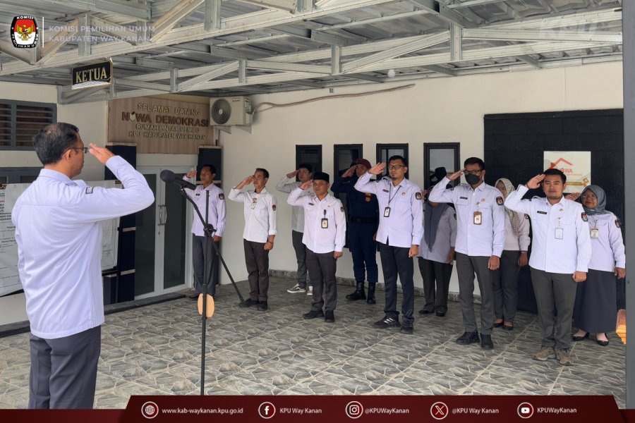 Pada Hari Senin Tanggal 21 April 2025, KOmisi Pemilihan Umum Kabupaten Way Kanan melaksanakan Apel Rutin Mingguan, dimana Kegiatan ini merupakan Apel Rutin di Minggu Ke-4, Seyokyanya Apel di Bina oleh Ketua Divisi Sosdiklih Parmas dan SDM KPU Way Kanan, Sehubungan adanya kegiatan Ketua Divisi yang tidak memungkinkan mengambil apel, Maka Apel Rutin Mingguan Di bina oleh Sekretaris Komisi Pemilihan Umum Kabupaten Way kanan.