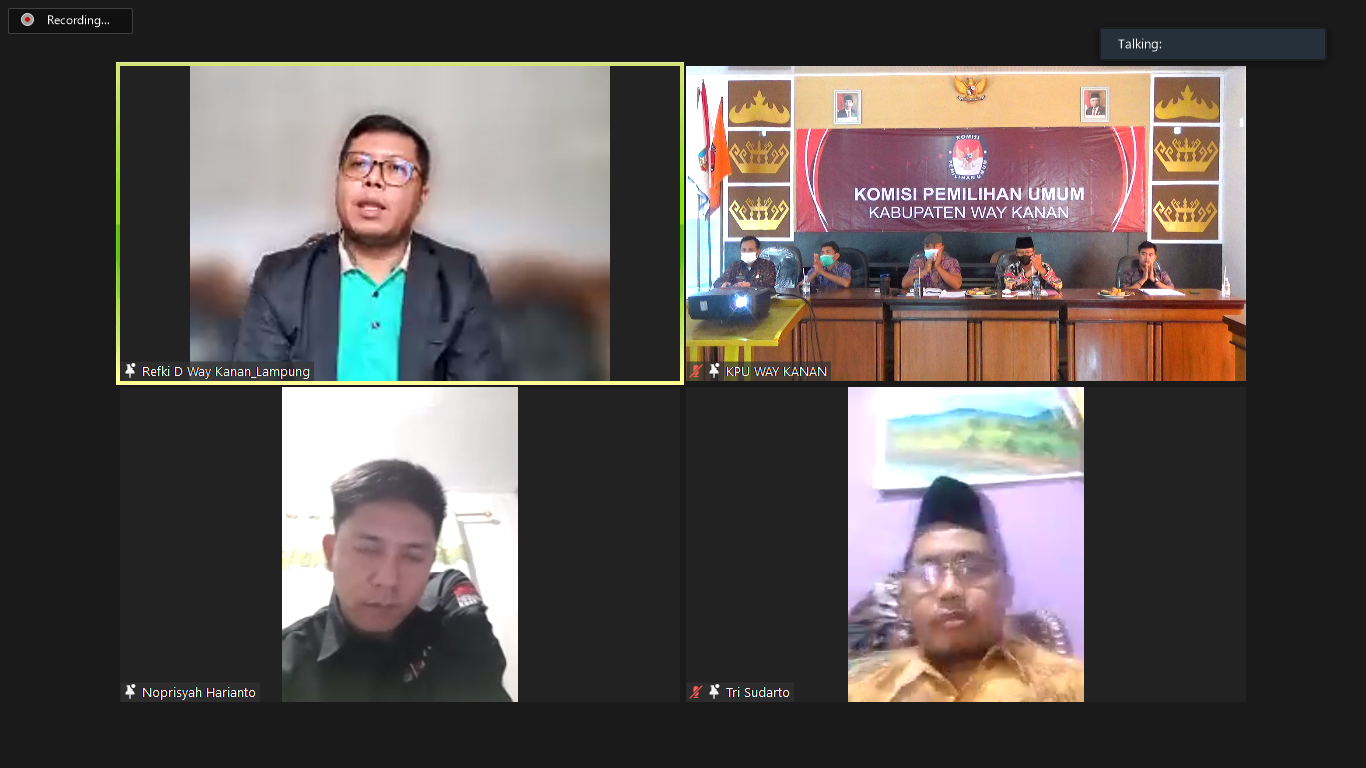 Hadir Ketua KPU Refki Dharmawan, Anggota KPU Tri Sudarto, Noprisyah Harianto, Secara daring di tempat terpisah melalui Aplikasi Zoom meeting.