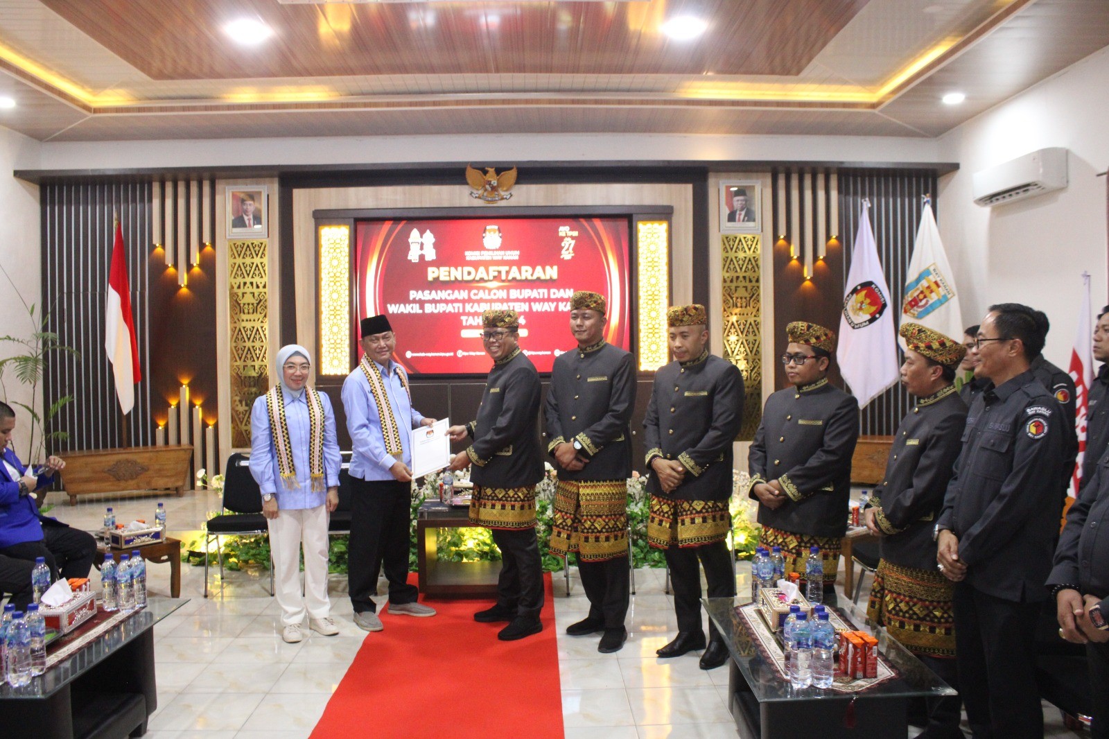 Pasangan yang diusung oleh koalisi 12 partai Politik yaitu ; 6 Partai sebagai pengusul PKB,Gerindra,PKS,PAN,Demokrat dan Perindo sedangkan 6 Partai sebagai pendukung yaitu , Hanura,Garuda,PBB,PSI, PPP dan Ummat ini tiba di kantor KPU Way Kanan sekitar pukul 13.43 WIB.