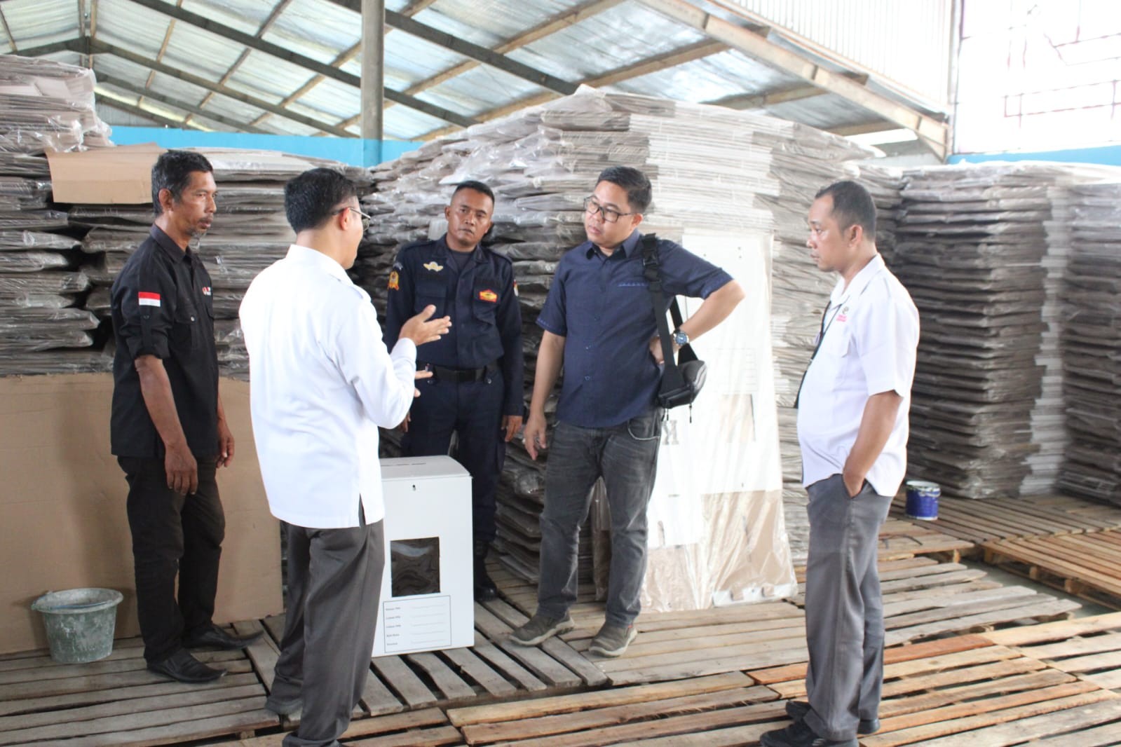 Erwan Bustami memastikan logistik yang sudah datang dalam keadaan baik dan memastikan kondisi gudang aman sampai pemilu 2024 nanti.