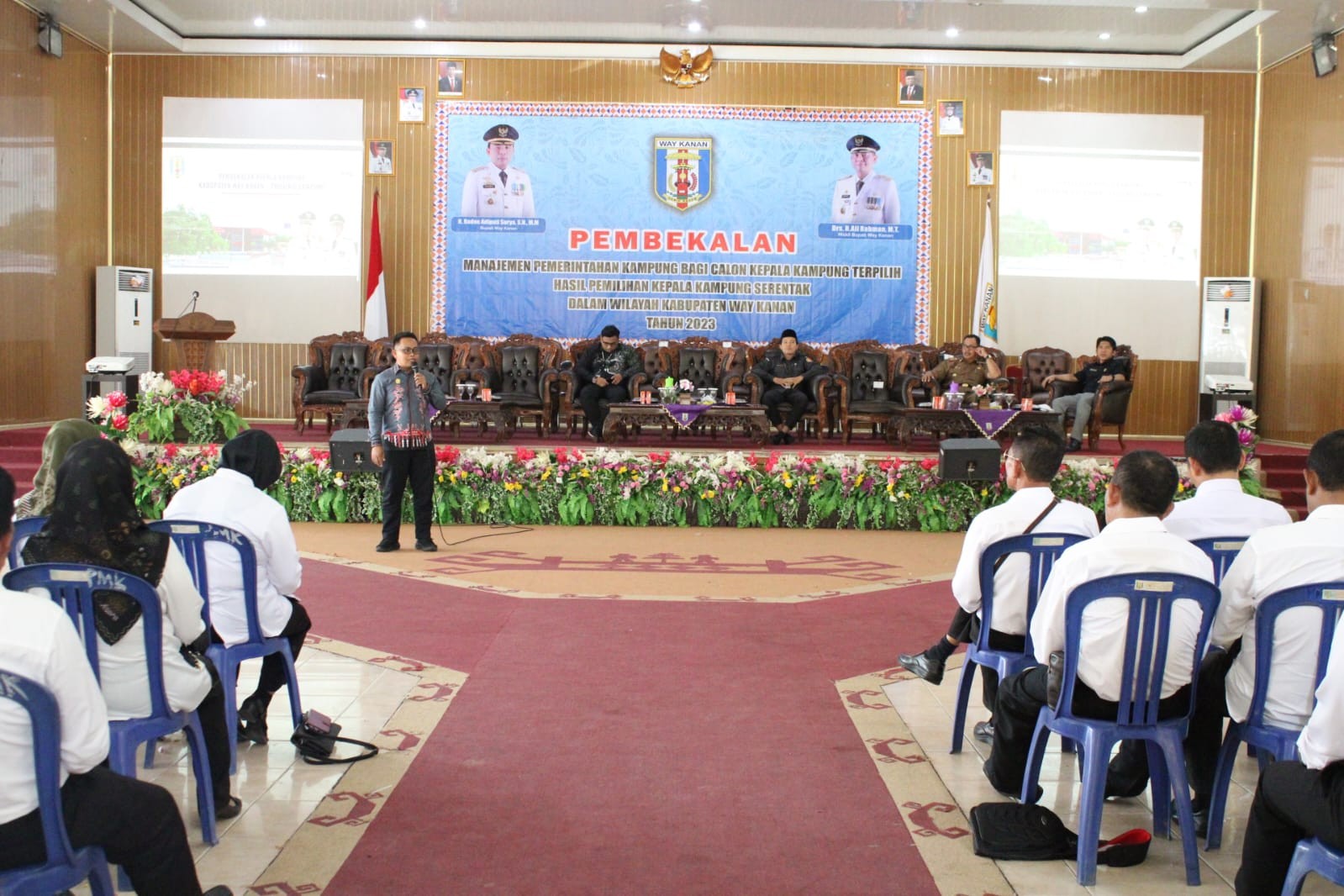Blambangan umpu, Selasa 04 Juli 2023 bertempat di Gedung Serba Guna Way Kanan, KPU kabupaten Way Kanan Melalui Kadiv Sosdiklih, Parmas dan SDM Tri Sudarto, S.Pd Menghadiri Pembekalan Manajemen Pemerintahan Kampung bagi calon kepala Kampung terpilih hasil pemilihan kepala kampung serentak kabupaten Way Kanan tahun 2023.