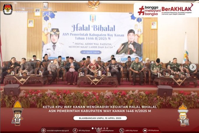 Blambangan Umpu, 10 April 2025, Ketua Komisi Pemilihan Umum Hairul Pasya menghadiri Halal Bihalal yang dilaksanakan oleh pemda way kanan tahun 1446 H bertempat di GSG Pemda Way kanan.