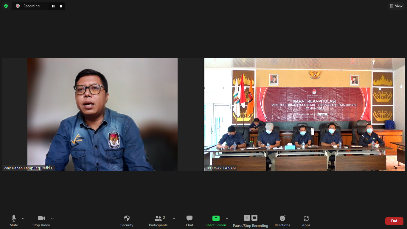 Blambangan umpu, Selasa 1 Maret 2022, KPU Kabupaten Way Kanan melaksanakan Rapat Rekapitulasi Data Pemilih Berkelanjutan (PPDB) periode Januari 2022 Secara Luring dan Daring, bertempat di Aula KPU Way Kanan.