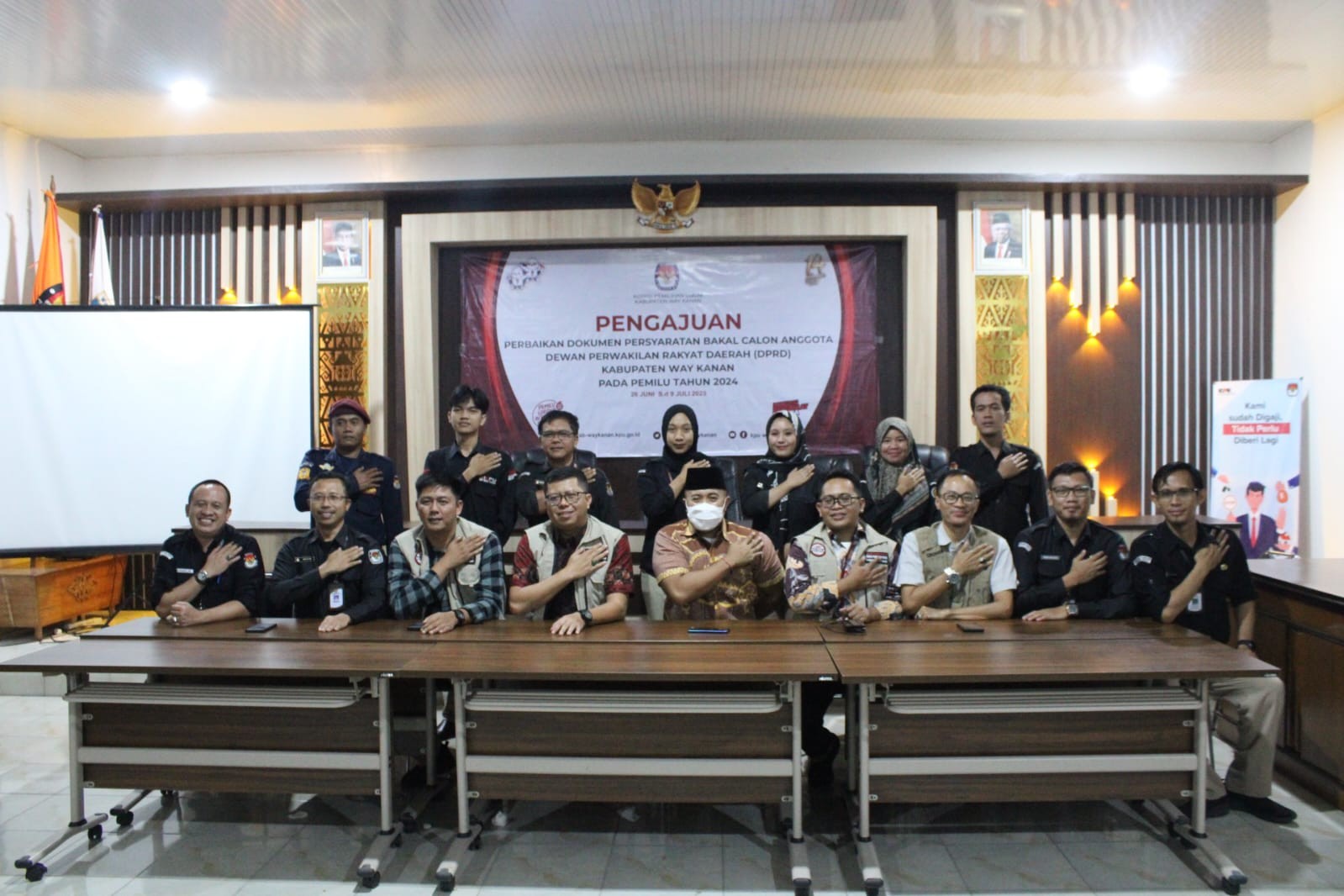 Blambangan Umpu, 9 Juli 2023, KPU Kabupaten Way Kanan menerima Pengajuan Perbaikan Dokumen Persyaratan Bakal Calon Anggota DPRD Kabupaten Way Kanan Pemilu Tahun 2024 di Aula Kantor KPU Kab. Way Kanan, Minggu (09/07/2023) .