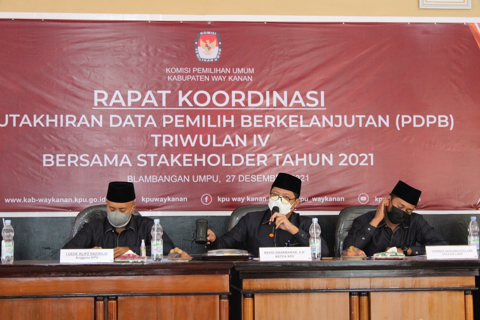 KPU Way Kanan melaksanan rapat kordinasi Pemutakhiran Data Pemilih Berkelanjutan (PDPB) Triwulan IV di Aula KPU Way Kanan Senin 27 Desember 2021.