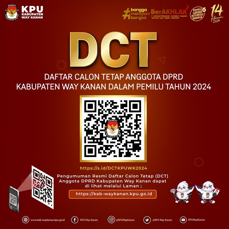 Pengumuman Daftar Calon Tetap (DCT) Anggota Dewan Perwakilan Rakyat Daerah (DPRD) Kabupaten Way Kanan Pada Pemilihan Umum Tahun 2024 dapat di unduh dibawah ini ;