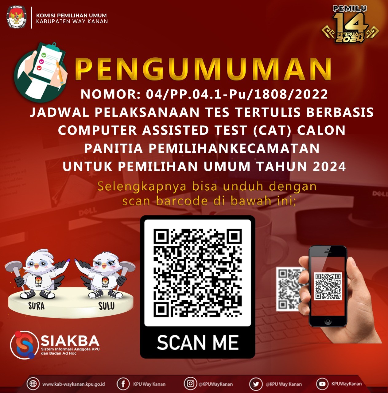 JADWAL PELAKSANAAN TES TERTULIS BERBASIS COMPUTER ASSISTED TEST (CAT) CALON PANITIA PEMILIHANKECAMATAN UNTUK PEMILIHAN UMUM TAHUN 2024