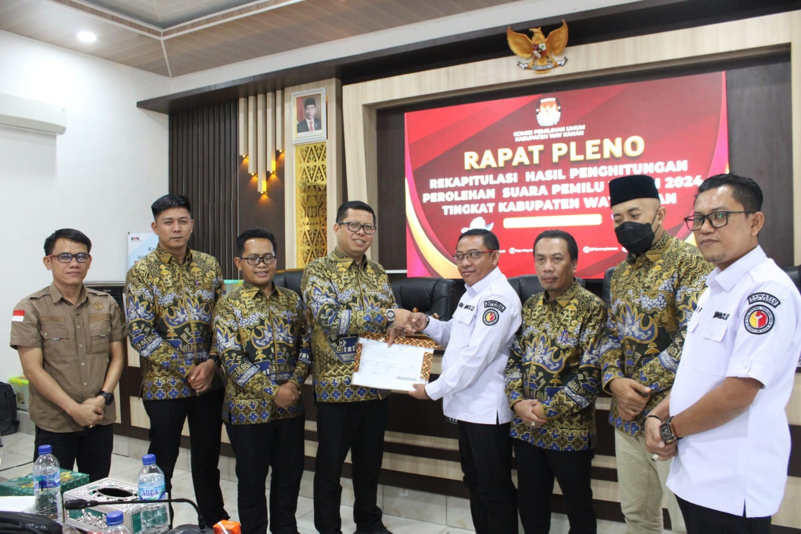 Pada hari ini Jum'at, tanggal satu bulan maret tahun dua ribu dua puluh empat, Komisi Pemilihan UmumKabupaten Way Kanan telah melaksanakan kegiatan rekapitulasi hasil penghitungan perolehan suara Presiden dan Wakil Presiden, DPD, DPR RI, DPRD Provinsi, DPRD Kab/kota di tingkat kabupaten dalam wilayah kerja KPU Kabupaten pada Pemilihan Umum Tahun 2024 bertempat di Aula Kantor Komisi Pemilihan Umum Kabupaten Way Kanan,