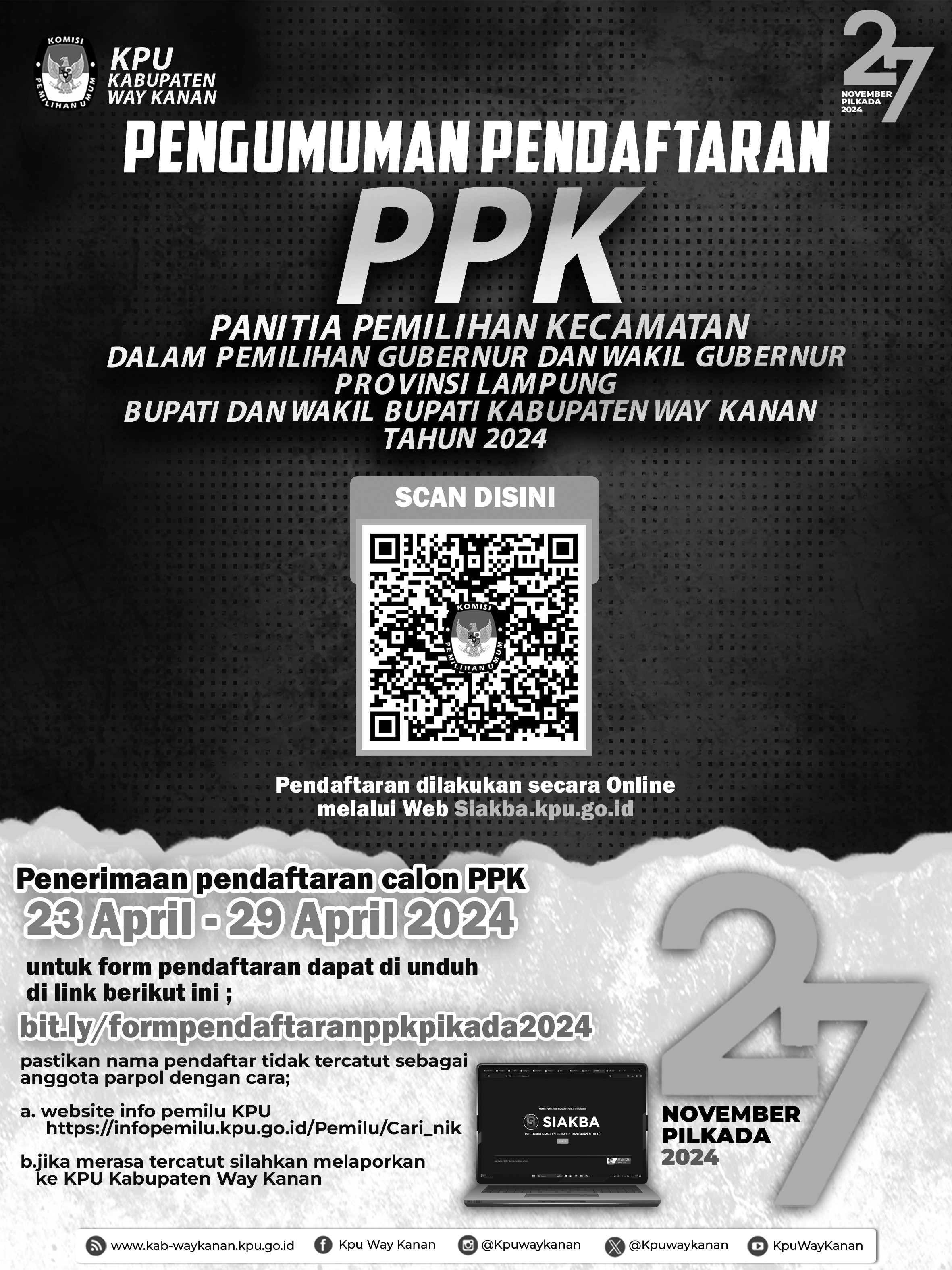 PENGUMUMAN REKRUTMEN PANITIA PEMILIHAN KECAMATAN PADA PILKADA TAHUN 2024
