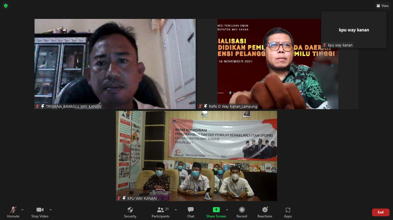KPU Way Kanan ajak Pengurus PGRI Way Kanan tingkatkan pengetahuan siswa tentang kepemiluan dengan melakukan pendidikan demokrasi sejak dini bagi peserta didik dari tingkat dasar hingga menengah, dalam Sosialisasi Pendidikan Pemilih Secara Daring yang diadakan oleh KPU siang tadi 18/11.