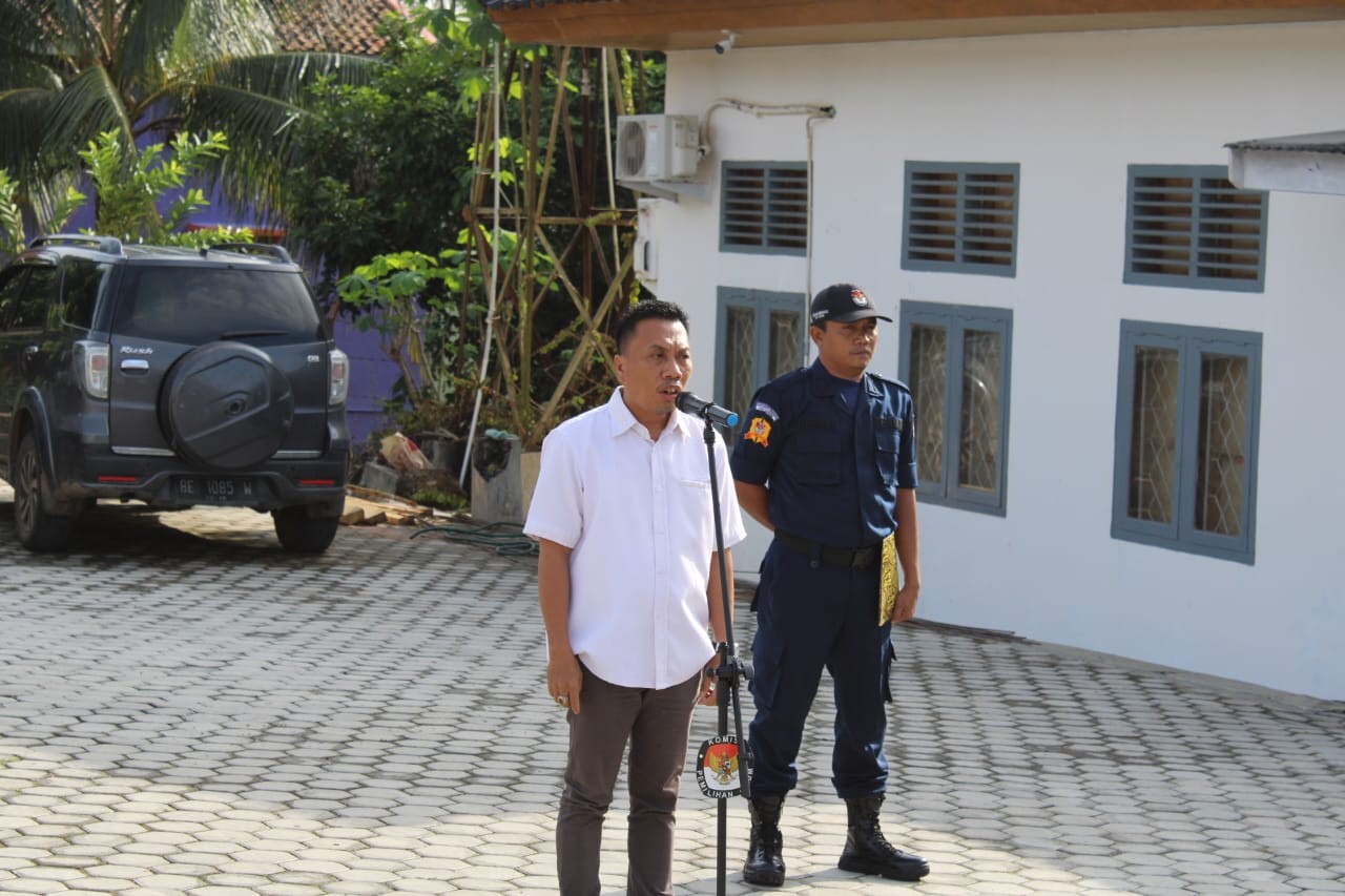 Bertindak sebagai pemimpin apel Ari witono staff kpu way kanan dan bertindak sebagai pembinan apel kadiv Hukum dan Pengawasan Doan Endedi,S.H.