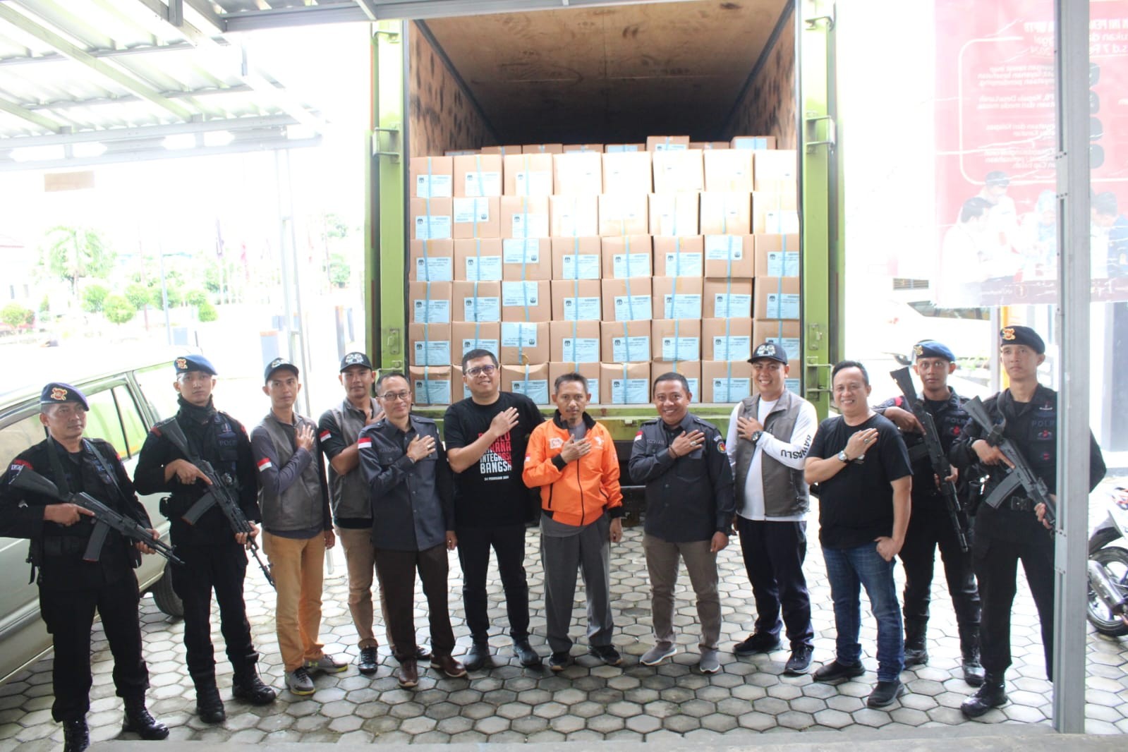 Surat Suara Pemilihan Umum 2024 tiba di Kabupaten Way Kanan Jumat 22 Desember 2023. Kedatangan armada logistik disambut Ketua KPU Way Kanan Refki Dharmawan, Ketua Bawaslu Way Kanan Sukindra, Kabag Ops Polres Way Kanan Kompol Suharjono dan Sekretaris KPU Way Kanan Arifin.