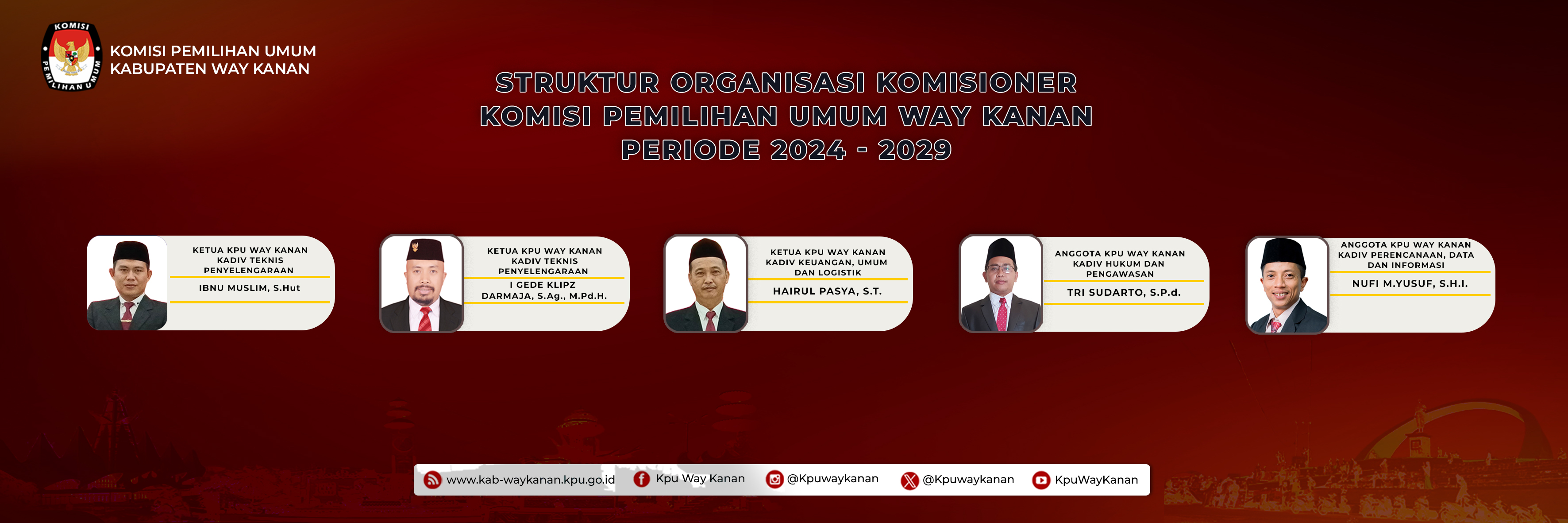 Struktur Organisasi Anggota KPU Way Kanan Sekretariat KPU Way Kanan Klik Di SINI Bagikan : Dilihat 1,099 Kali.